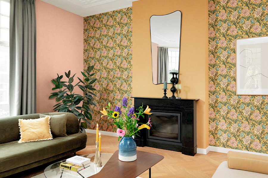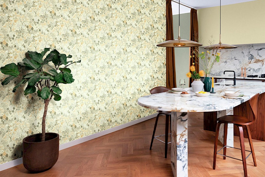 Hurmaavia kukkakuoseja löytyy herkistä lehtikuvioista näyttäviin runsaisiin kuvioihin. Mallistoa täydentää tyylikkäät artdeco-henkiset kuosit, joihin glamouria luo pinnan hentoinen kiilto. Näyttävät sisustuspaneelikuvat ovat todellisia taideteoksia itsessään.